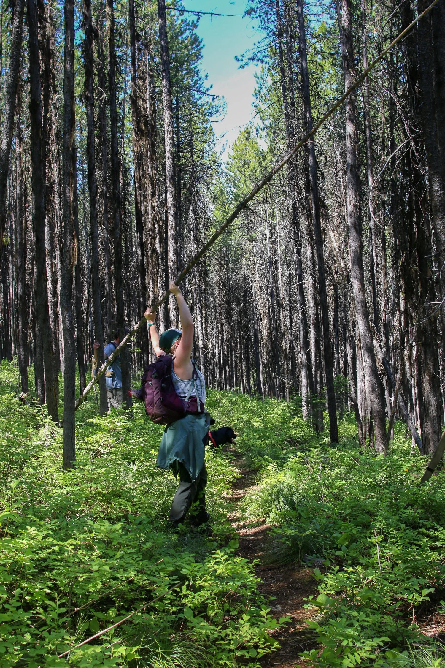 Nathan, Kaydee, her boyfriend and volunteer for the day, Si, Tayberry (Kaydee and Si’s dog and Jr. ranger), and I drove the 6 miles back to the Beaver Creek Trailhead, where we gathered our gear, picked up any lingering trash, and prepared for a day of sawing downed trees and cutting back brush on the trail. The hike started off mellow and thoughts of an easy day ahead passed through all of our minds. But, as Kaydee had learned and passed on to me, “there’s always a curveball.”